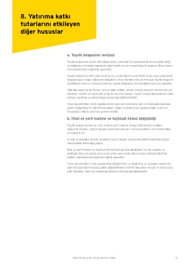 Yukarıda belirtilen türde yapılan revize işlemleri nedeniyle yatırım tutarında meydana
