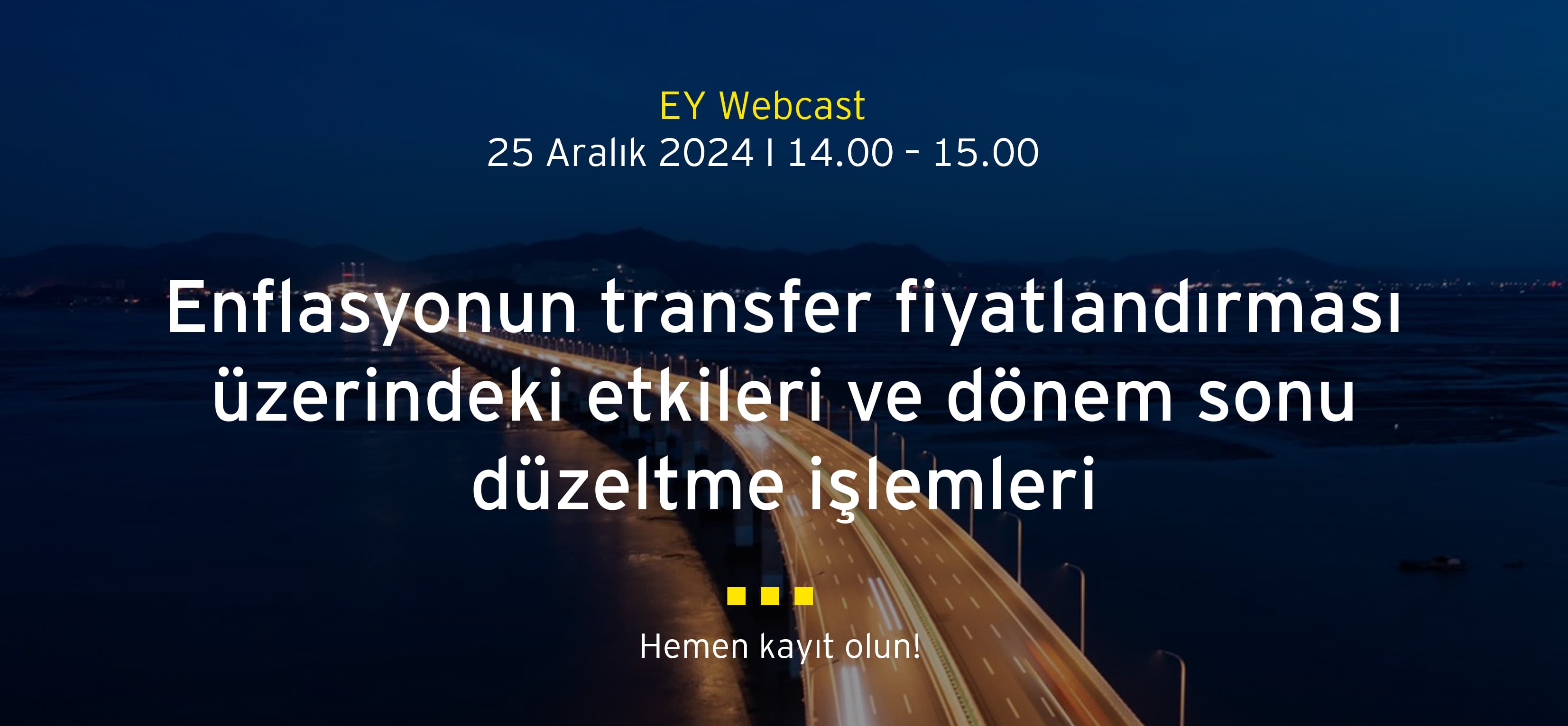 Etkinliğe 25 Aralık Çarşamba günü saat 08.00'e kadar şirket e-postanız ile kaydolmanızı rica ederiz. Webcast için katılım linki kayıt olunan e-posta adresine etkinlik günü gönderilecektir.